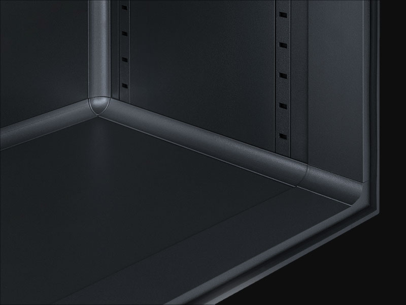 Cabinet interior features an edgeless design reducing dust build-up also making it easy to clean.