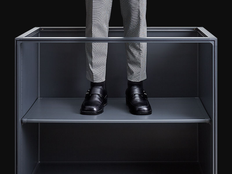 Aluminium joints anchor the whole cabinet to endure daily stresses and ensure shape is maintained.